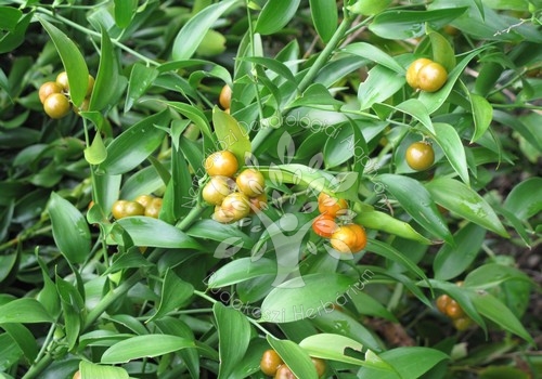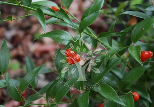 Valamelyest a szúrós csodabogyóhoz (Ruscus aculeatus) hasonlító, de annál jóval lazább “bokrokat” alkotó, jelentéktelen fehéres virágaiból őszre látványos narancsszínű bogyókat a hajtásvégein hozó növény. Nálunk biztosan áttelel. Fák, örökzöld bokrok félárnyékába, fal tövébe telepítsük.
