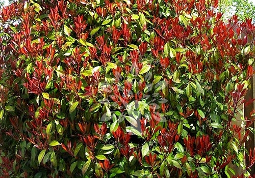 Akár háromméteresre is megnővő örökzöld cserje. Felálló ágai sűrű lobozatúak. Sötétzöld levelei fényesek, fiatalon pirosas színűek. Késő tavasszal nyílnak virágai. Védett helyen hazánkban is szépen fejlődik. Napos helyre ültessük!